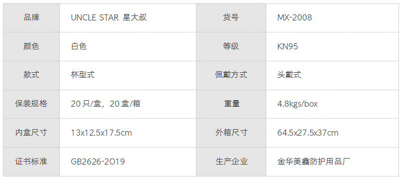 UNCLE STAR星大叔KN95防护口罩 MX-2008
