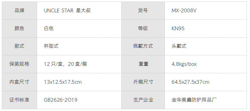 UNCLE STAR星大叔KN95防护口罩(带阀款)MX-2008V