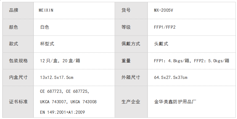 MEIXIN防护口罩(带阀款)FFP1/FFP2 MX-2005V