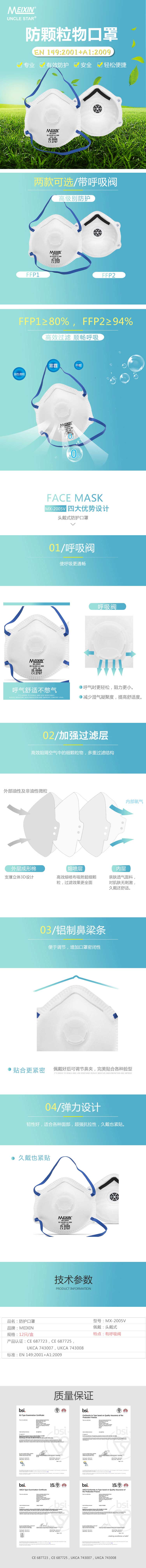 MEIXIN防护口罩(带阀款)FFP1/FFP2 MX-5005V