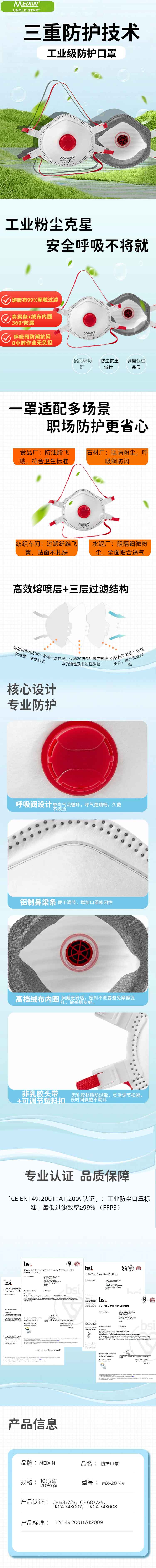 MEIXIN防护口罩(带阀款)FFP3 MX-2014V