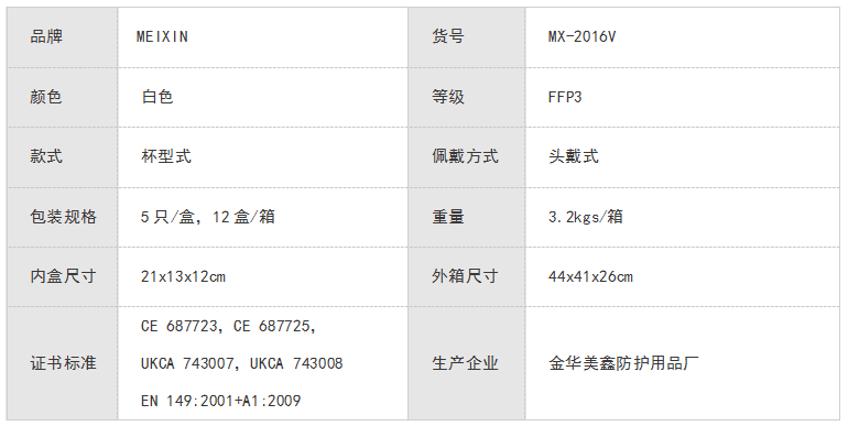 MEIXIN防护口罩(带阀款)FFP3 NR D MX-2017V