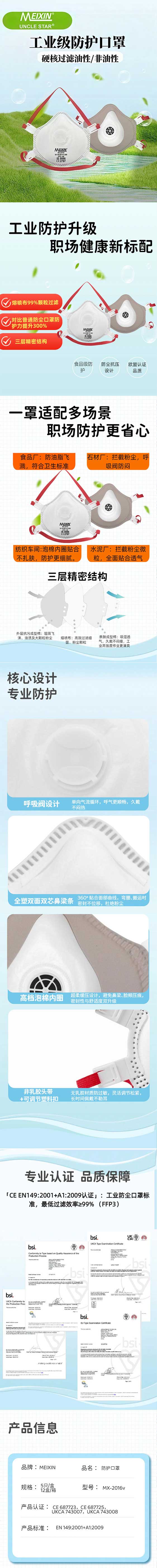 MEIXIN防护口罩(带阀款)FFP1/FFP2 MX-5005V