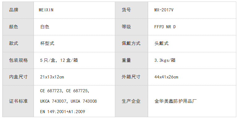 MEIXIN防护口罩(带阀款)FFP3 NR D MX-2017V