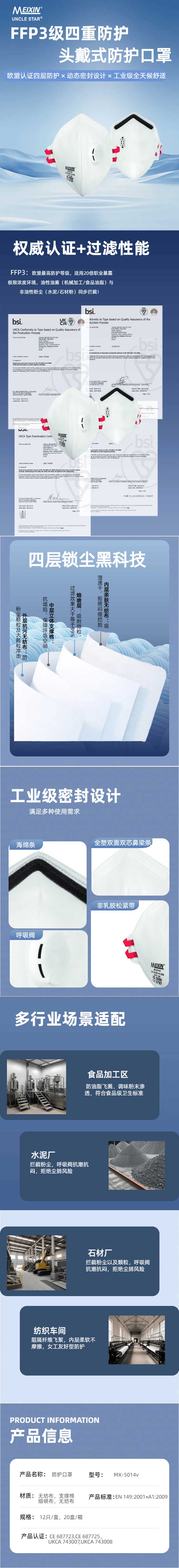 MEIXIN防护口罩(带阀款)FFP3 MX-5014V