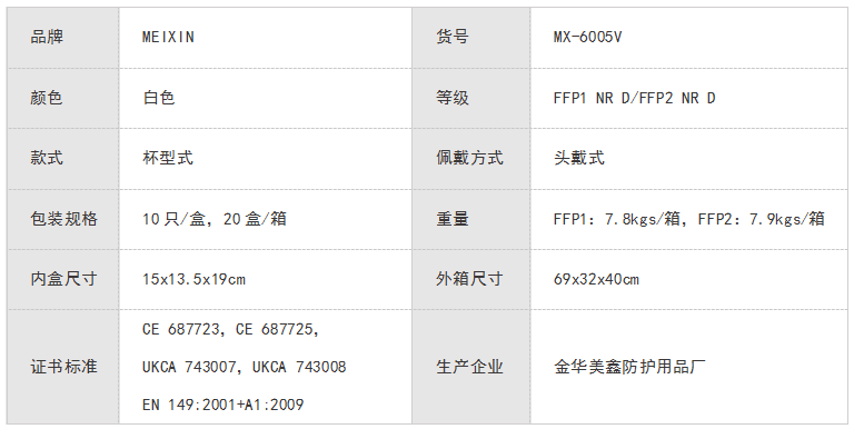 MEIXIN防护口罩(带阀款)FFP1 NR D/FFP2 NR D MX-6005V