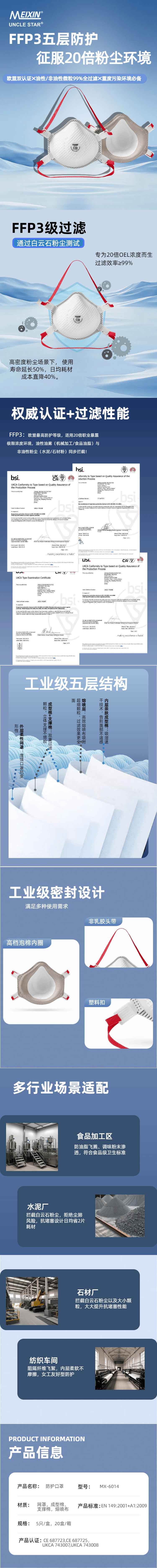 MEIXIN防护口罩 FFP3 NR D MX-6014