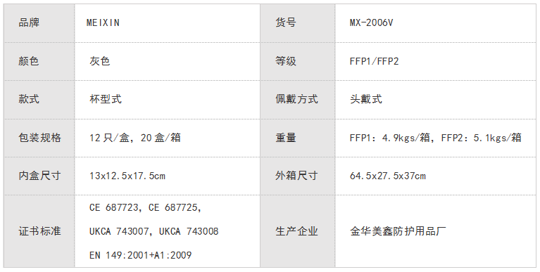 MEIXIN防护口罩(活性炭带阀款)FFP1/FFP2 MX-2006V