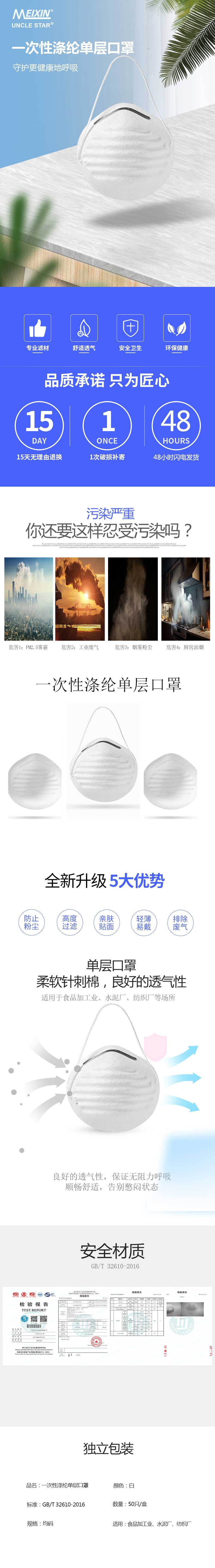 一次性涤纶单层口罩 MX-004