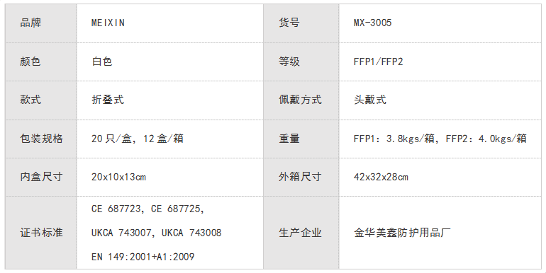 MEIXIN防护口罩 FFP1/FFP2 MX-3005