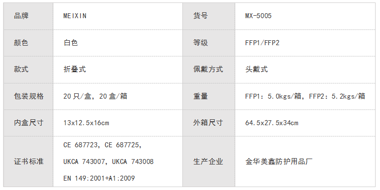 MEIXIN防护口罩 FFP1/FFP2 MX-5005
