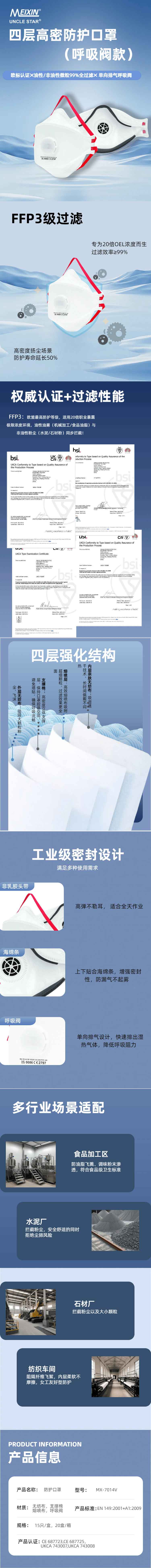 MEIXIN防护口罩(带阀款)FFP3 MX-7014V
