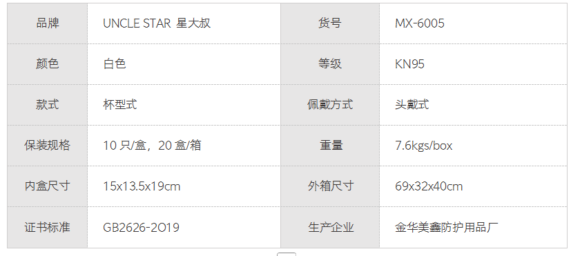 UNCLE STAR星大叔KN95防护口罩 MX-6005