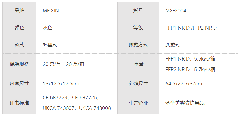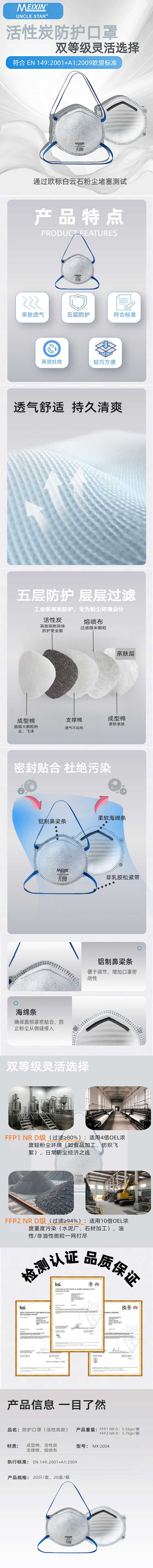 MEIXIN 防护口罩(活性炭款)FFP1 NR D/FFP2 NR D MX-2004