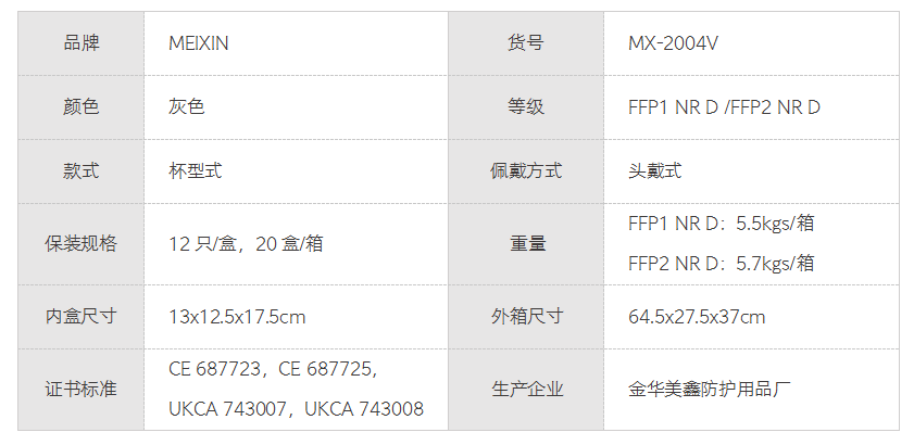 MEIXIN 防护口罩(带阀活性炭款)FFP1 NR D/FFP2 NR D MX-2004V