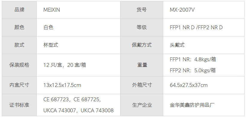 MEIXIN防护口罩 FFP1 NR /FFP2 NR MX-2007V