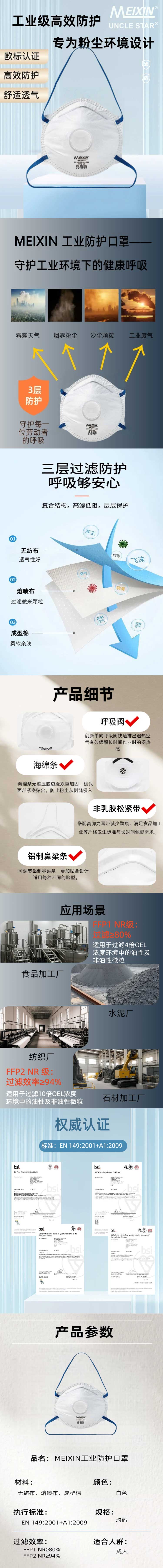 MEIXIN防护口罩(带阀款)FFP1/FFP2 MX-5005V