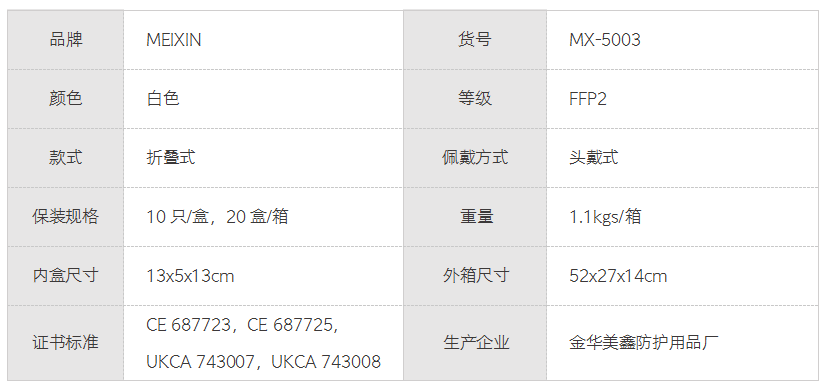 MEIXIN防护口罩(带阀款)FFP1/FFP2 MX-2005V