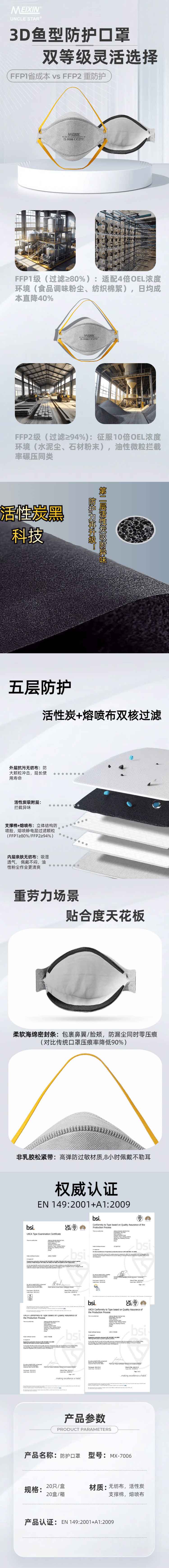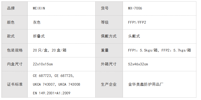 MEIXIN防护口罩 FFP1/FFP2 MX-7006